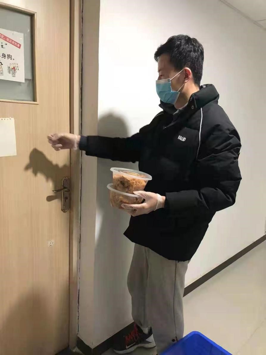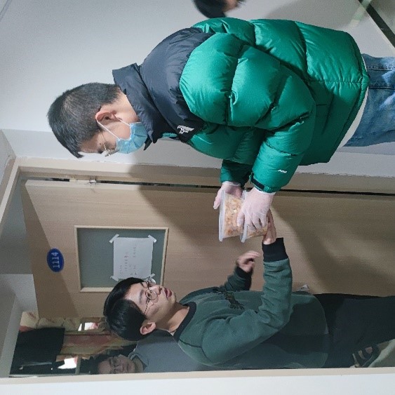 无人系统制导与控制研究所研究生第1党支部党员 袁浩奔:作为一名志愿者,在疫情管控期间负责7号楼的楼层送餐,在电梯口等待餐送到并清点份数,之后送到每个宿舍中去,送餐完成后将放餐盒送到一楼。