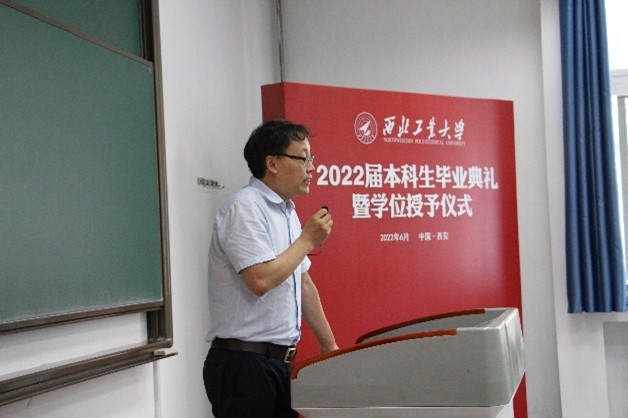 李广宁老师作为班主任代表发言,李老师结合《空气动力学》课程,将学生的成长成才过程类比为气动外形的优化,动力系统的加强,飞行阻力的减少,稳定性和操纵性的权衡,祝愿学生行稳致远,真正成为手可摘星辰的星际航行者。