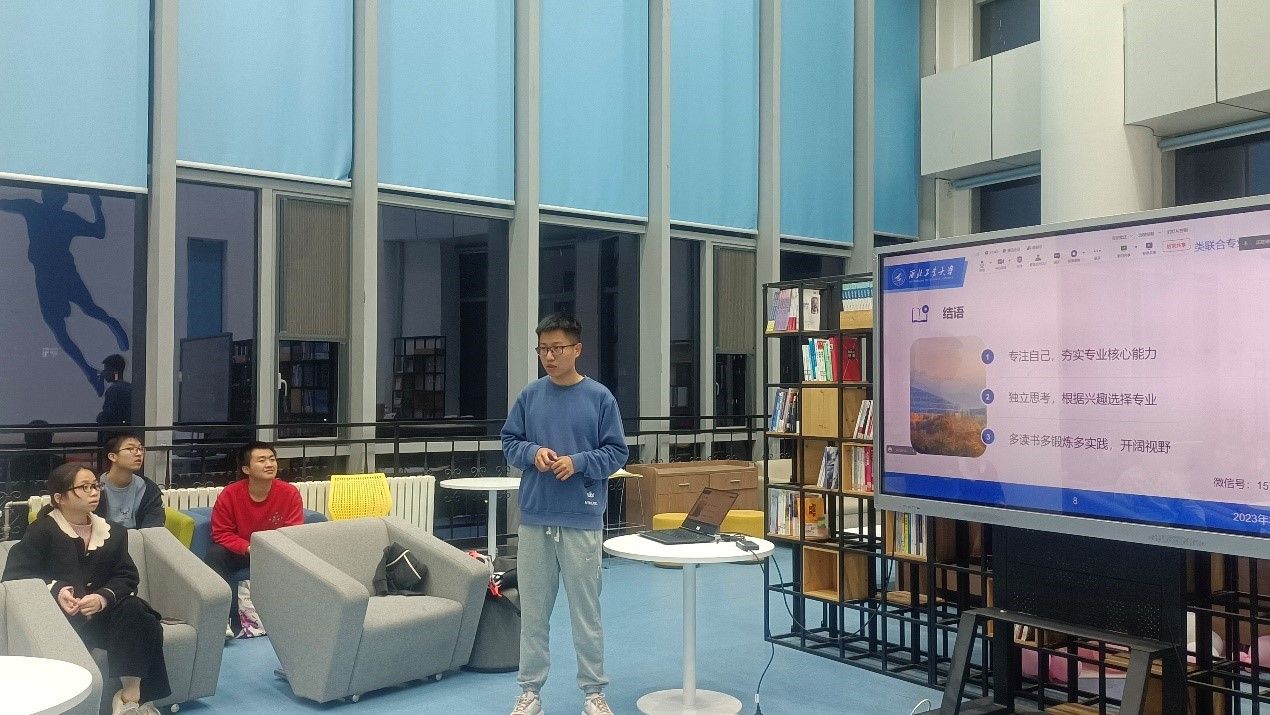 2019级的王睿之同学为大家带来了有关飞行器控制与信息工程的总体介绍以及进入到大三和大四阶段时专业课程的选择。他勉励大家专注自己,夯实专业核心能力;养成独立思考的习惯,根据兴趣选择专业,同时多读书多锻炼多实践,让自己拥有开阔的视野。