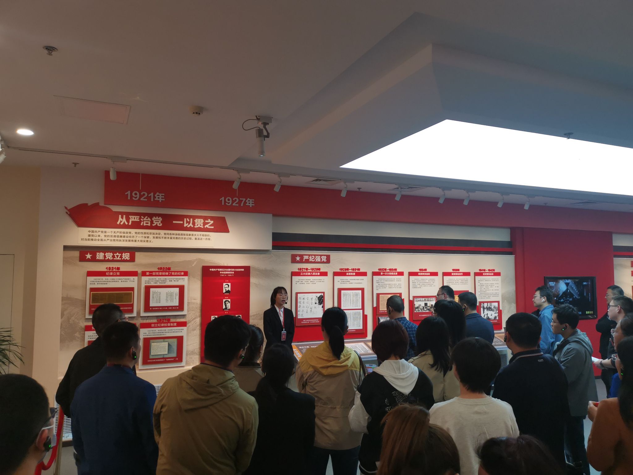 师生跟随教育基地工作人员的讲解,回顾管党治党的历程,了解我党在成立之初就立下规定,确立党章明确党纪、设立纪律检查制度一以贯之从严治党,在任何时期都坚持严格要求党员同志,绝不容忍贪腐行为。