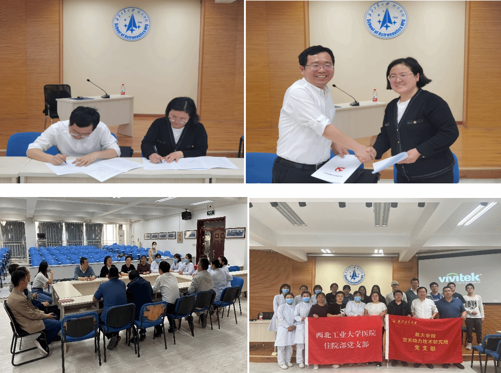 空天动力技术研究所党支部书记吕翔和校医院住院部党支部书记贾晶签署支部结对共建协议书,双方支部党员围绕开展联合主题党日活动、创建支部特色品牌等方面进行了研讨交流。