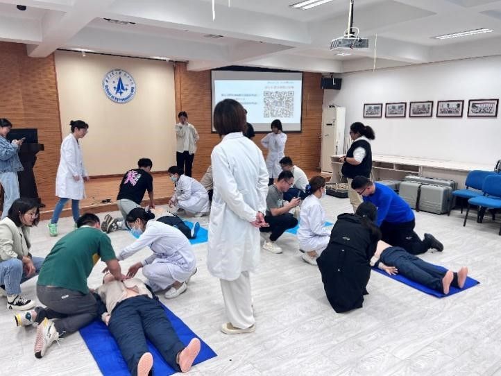 4号楼多媒体会议室为师生进行了安全教育和急救技能培训。空间操作技术研究所党支部书记张帆就校医院对此次活动的大力支持和医护人员的到来表示由衷的感谢和热烈的欢迎,并希望广大师生能够“学常识,用常识”,助人之心常在。
