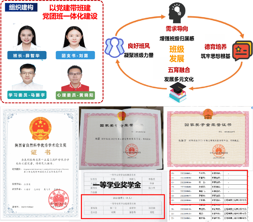 班级建设:22102-1班由23名博士生组成,其中男生19名,女生4名,党员人数16名,占总人数的69.57%。班级始终遵循“以培养‘总师型’人才为目标”的班级理念,倡导以党建带班建,党团班一体化建设,注重组织建构,适时调整班干架构。发挥班长在集体建设中先锋作用,增强班级归属感,同时发挥团支书引领作用,筑牢思想根基,并以特色活动为抓手,发展多元文化,最终成为一个有凝聚力的班集体。在过去一年里,他们硕果累累。班级课程加权平均分,89.35分,位于年级第一;综合测评也位于年级第一,国家奖学金3人次、无码av