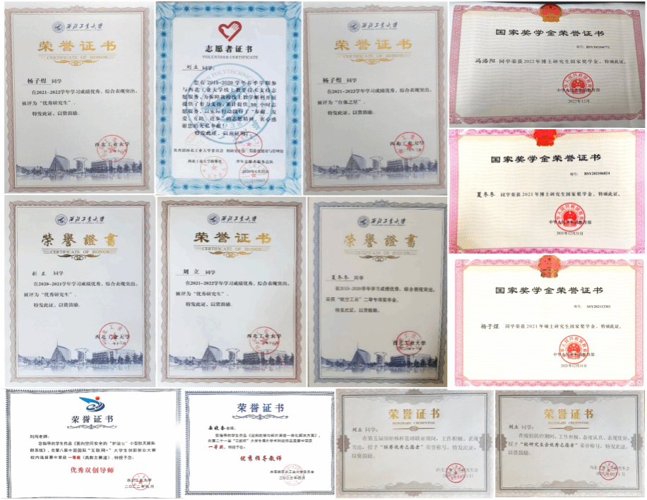 连续两年获得模范研究生导学团队、研究生模范班级、研究生标兵三项荣誉全满贯。