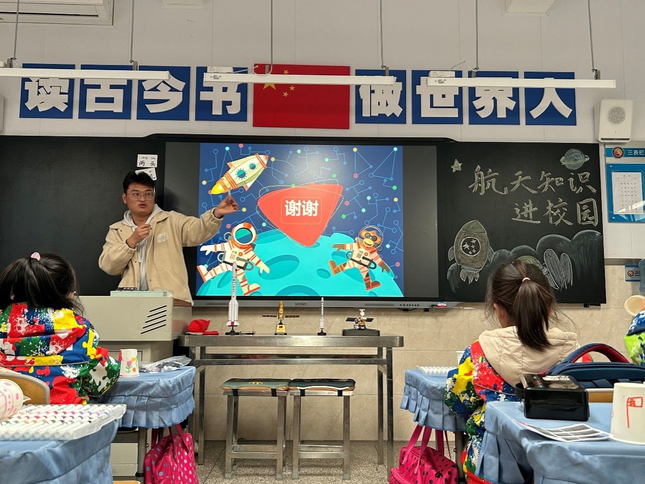 学生航天科普志愿者服务队走进西安高新第二小学,为一年级的小朋友们进行航天科普。志愿者们倾情教学、细心指导,小朋友们认真听讲、踊跃实践,共同完成了一堂生动有趣的航天科普实践课。