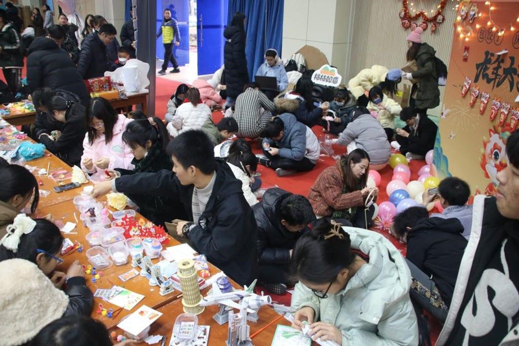 亲手制作的礼物往往共鸣更大,在这里,同学们纷纷动手拼图、搭积木、做灯笼,为自己做一份独一无二的新年礼物,现场充满欢声笑语,气氛愉快温馨,其乐融融。何谓新年之乐?乐在其中矣!