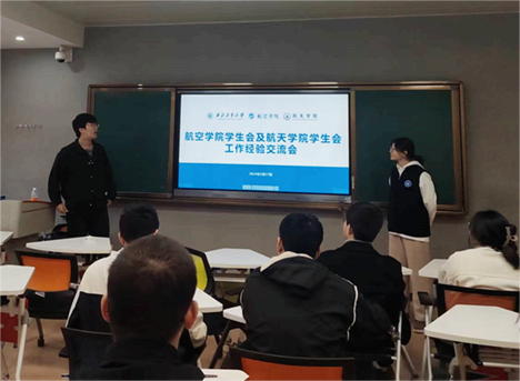 在与航空学院学生会交流会上,航空学院学生会主席团成员刘恒忠分享了航空学院学生会工作开展情况,包括围绕“航空”主题和“总师育人文化”举办的活动,以及各职能部门在多方面取得的成果。无码av