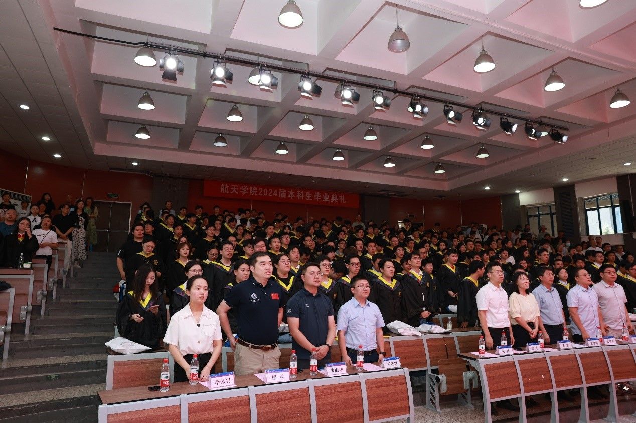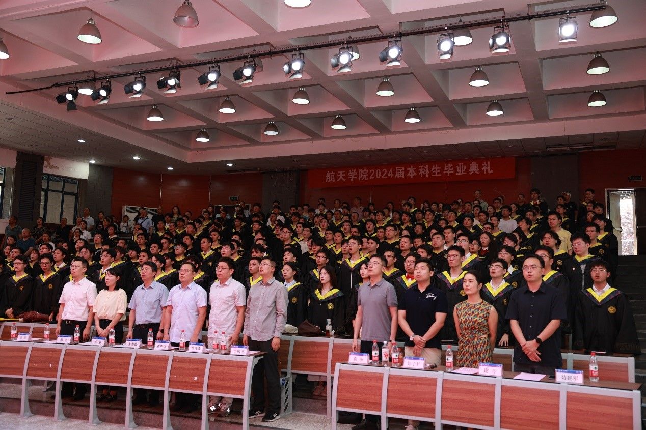 校歌》中落下帷幕。学子们离别时,心怀感激,眼含不舍。这场庄严而神圣的典礼,不仅见证了同学们在校园中的成长和收获,也象征着他们即将踏上全新征程的起点。毕业并非终点,而是人生新篇章的开启。每位航天学子将怀揣着母校的情谊和教诲,背负起梦想和责任,勇敢追逐自己的星辰大海。他们将坚定不移,守护初心,迎接未来的光辉岁月。