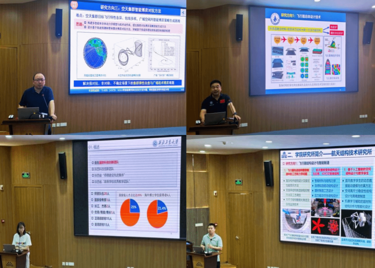 随后空天智能感知与控制技术研究所王靖宇教授从光学导引和视觉导航技术两个关键领域,向我们展示了该所的研究方向和创新成果;空天飞行技术研究所闫晓东教授从研究所的基本情况、主要研究方向以及导师团队组成三方面,展现了该所的特色与优势;空间操作技术研究所张帆教授分享了该所发展的厚重历程,空间操作研究方面的国之重器、国之利器,自主性、创新性人才培养的西工大举措等;航天结构技术研究所王时玉副教授全方位展示了该所在结构测试中的光学测量技术、热塑性复合材料承载结构技术、固体火箭发动机结构完整性分析、飞行器地面力学环境装备等方面的技术成果与应用成效。