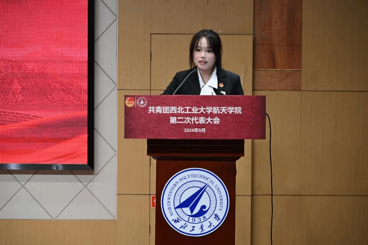 韩冬向到场老师、学生团员代表们表示热烈欢迎,并向学院拼搏在一线共青团工作的师生们致以亲切问候。他明确阐释了本次大会在习近平新时代中国特色社会主义思想引领下,吸纳过往之鉴,擘画未来蓝图的主要任务。他提到,我们通过此次团员代表大会,进一步凝聚青年力量,明确奋斗目标,激发创新精神,为航天事业的腾飞做出新的贡献。在大会即将开幕之际,他向学院共青团工作提出四点希望:第一,加强思想引领,坚定理想信念;第二,铭记时代使命,勇担青春责任;第三,发挥组织优势,服务青年成长;第四,勇于创新实践,助力航天强国。他鼓励同学们珍惜此次大会的宝贵机会,积极参与讨论,认真听取各方意见,为学院的团学工作建言献策。