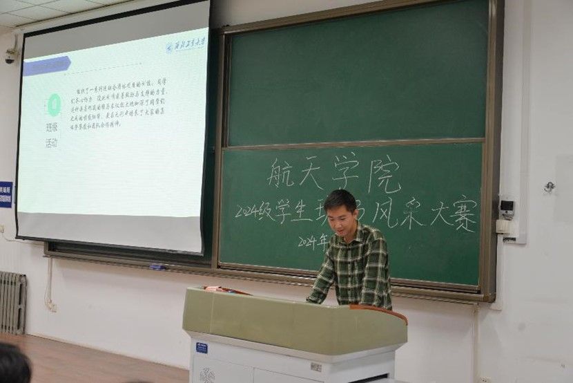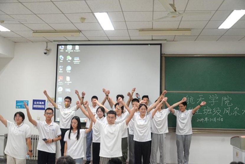 随后,各参赛班级按顺序,就班级管理、班规、班训、班徽、班服、班级活动等方面展开介绍,以唱歌、朗诵、幕布剧等多种形式展示班级风采。同学们认真准备、热情高涨,展现出航天学子团结一心、积极向上的精神风貌。