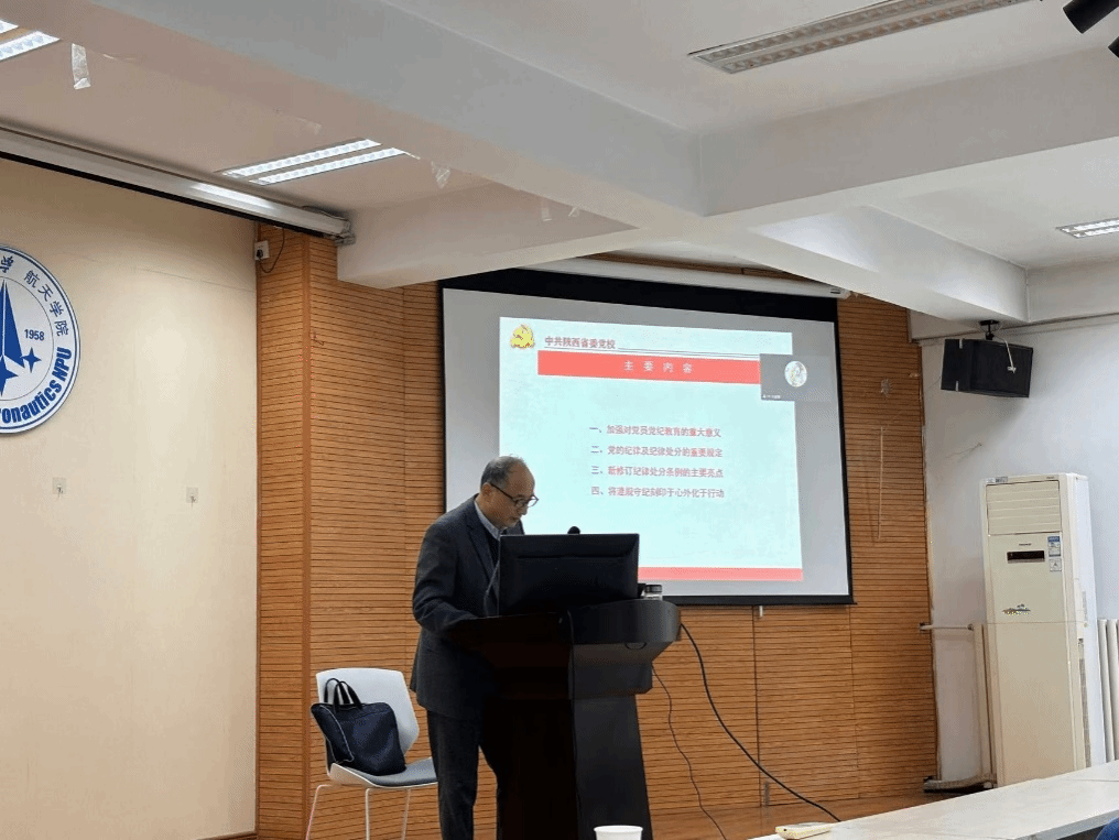 11月7日,邀请陕西省委党校侯建会教授讲授《以严明的纪律推进党的自我革命》专题党课。侯教授从加强对党员党纪教育的重大意义、党的纪律及纪律处分的重要规定及新修订纪律三个方面讲解新修订《中国共产党纪律处分条例》,强调党员干部在履职用权各环节,都要用条例“标尺”衡量自身行为,日常小事严守底线、复杂事务把控原则,杜绝“微腐败”滋生、防范小错酿大患。