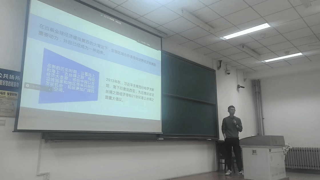 11月14日,邀请学校党代会宣讲团成员、马克思主义学院代家玮副教授讲授《完善推进高质量共建“一带一路“机制》的主题宣讲。代老师为大家介绍了一带一路的进展与成就,阐述了共建”一带一路“面临的挑战,包括当今世界经济复苏乏力、”一带一路“沿线国家的政策不确定性增大、部分国家制造国际舆论压力等,探析了构建互通网络、构建立体互联、推动科技创新等推动一带一路高质量发展的建议。