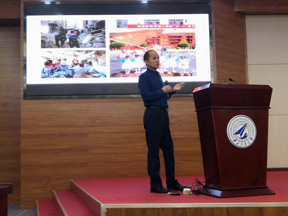 冯胜平从人类航天发展史讲起,着重介绍了中国航天发展历史。他将中国航天发展分为在共度时艰中应运而生、在自力更生中成长壮大、在持续创新中比肩崛起三大部分。原子弹、导弹、人造卫星、神舟飞船,一张张里程碑式的照片、一个个艰苦奋斗的故事给大家展示了中国航天一路走来的光辉历程,也让虽然没有真正经历过航天事业发展的同学们体会到了构建航天科技工业基础体系的不易和航天事业从无到有的成功。