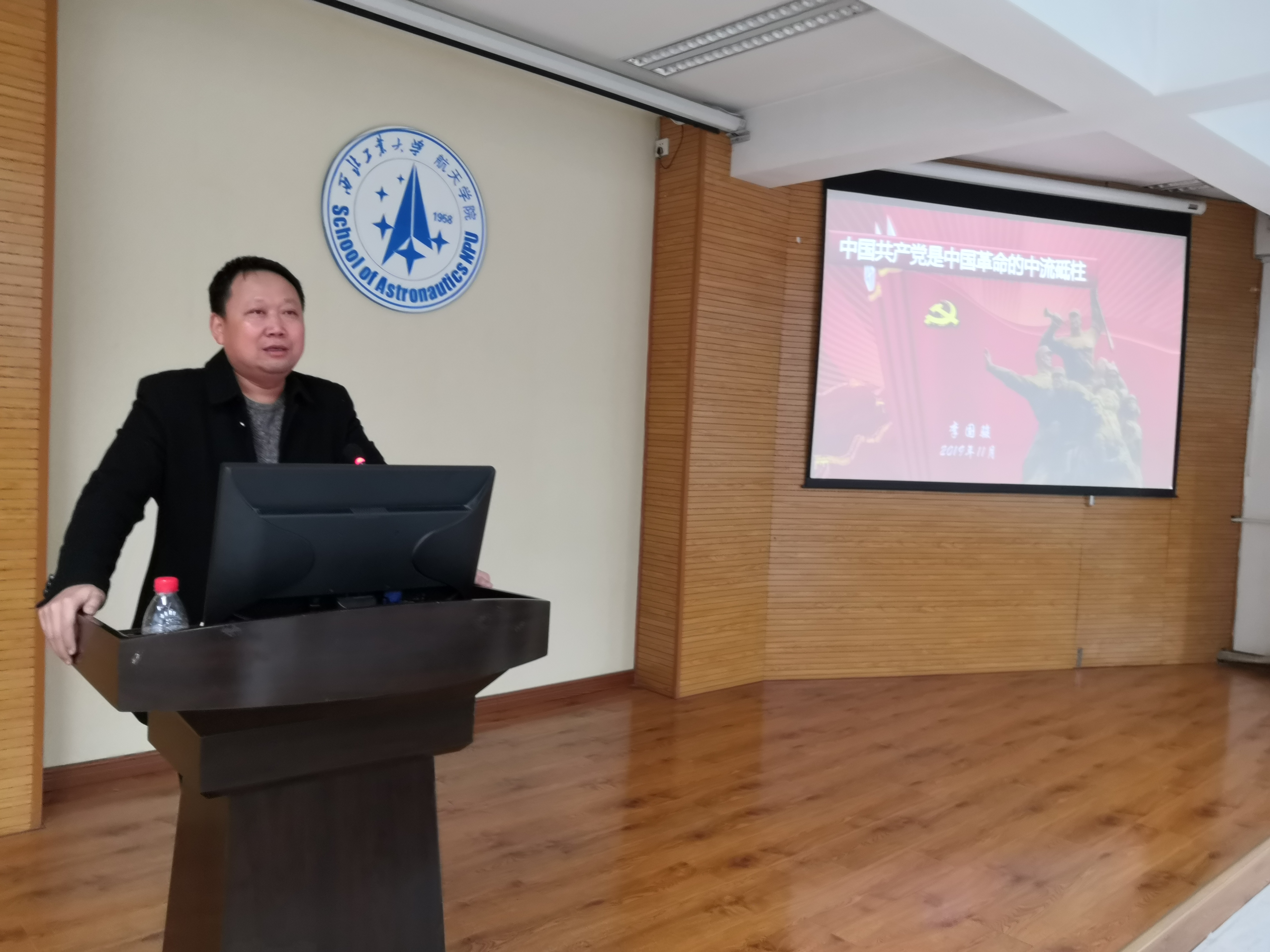11月7日晚上7点,在无码av 4号楼6楼多功能厅,无码av 组织员李国骏为入党积极分子讲授“中国共产党是中国革命的中流砥柱”专题党课。无码av 与航海学院第93期全体入党积极分子聆听了此次党课。