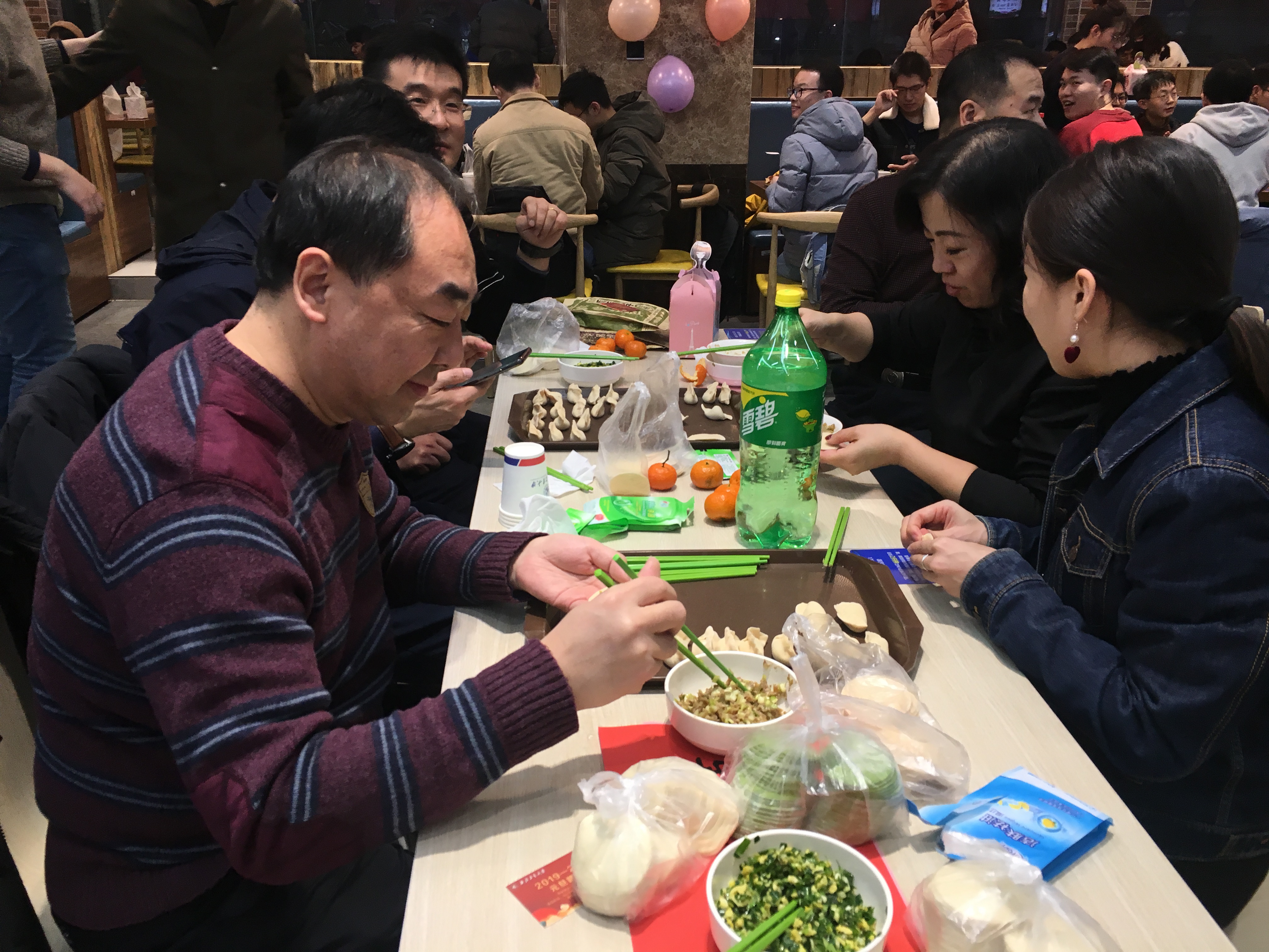 的同学们亲切交谈,表达学校对同学们的关心与爱护,了解学生心中所思所想,并对同学们送上新年祝福。同学们发挥奇思妙想,激情创作,各种形状的饺子诞生。有的饺子中包裹着硬币和花生,吃到的同学收获了大家真诚的祝福。团圆餐其乐融融,节日氛围浓厚。最后,在“包饺子大赛”、“倒念词语比赛”等形式多样的活动中,包饺子活动圆满结束。