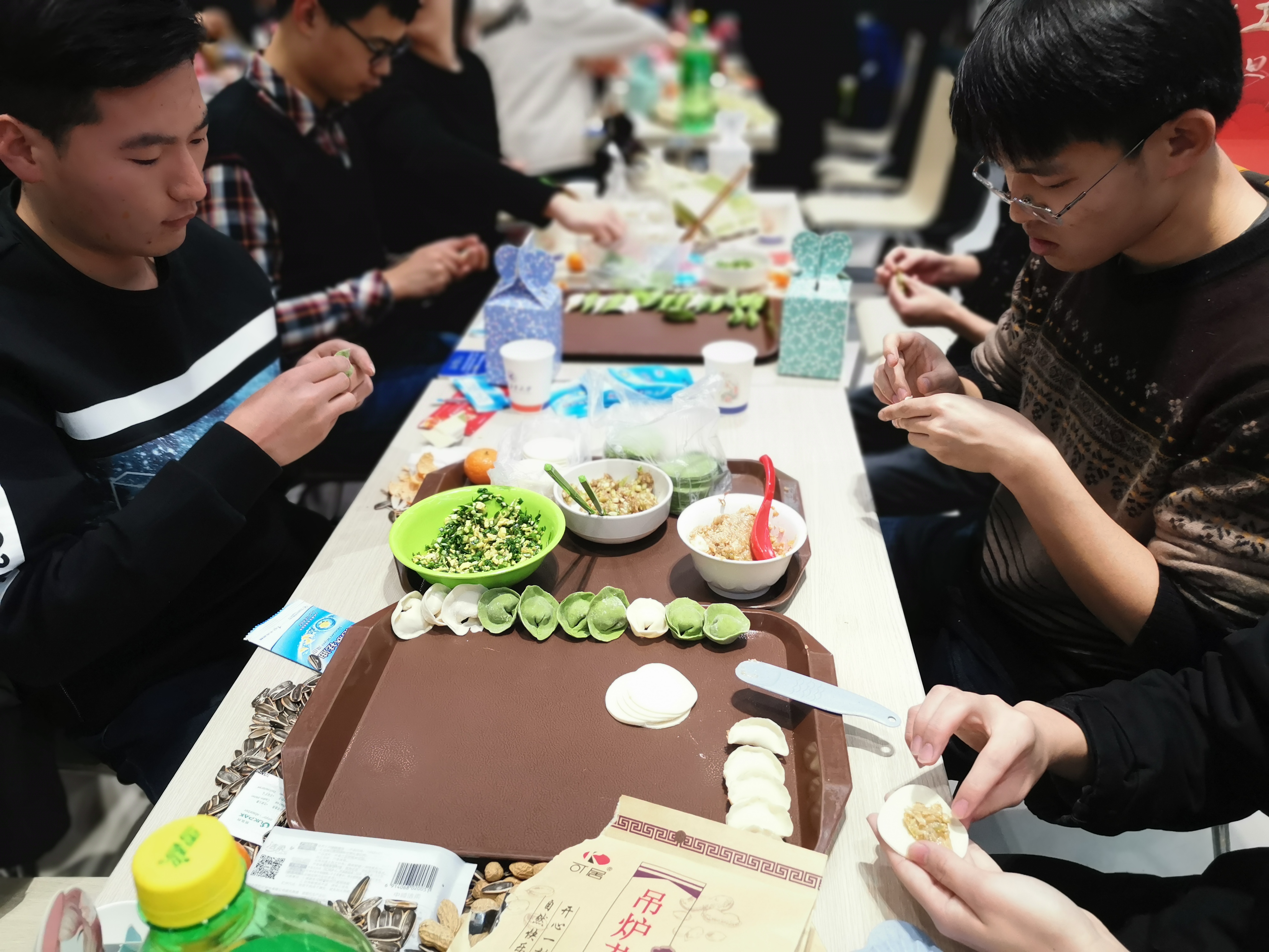 师生领取了饺子皮和饺子馅后,围坐在一起,开始了自己的包饺子之旅。无码av